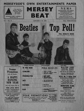 The front-page headline of the Mersey Beat issue on January 4, 1962!